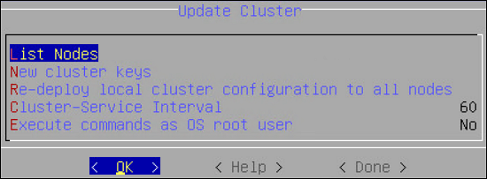 1. In the ESA CLI Manager, navigate to Tools > Clustering > Trusted Appliances Cluster > Maintenance: Update Cluster Settings.