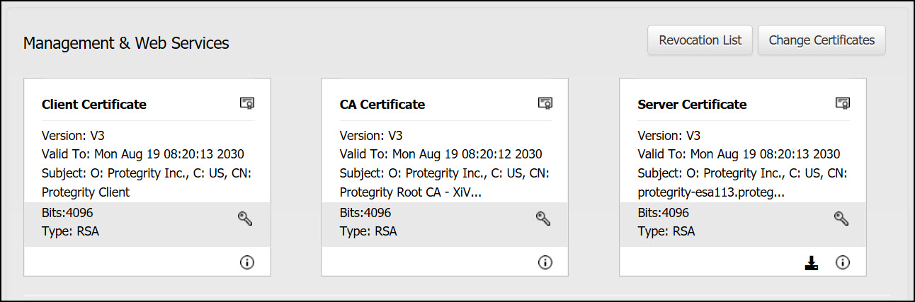 For more information about Management and Web Services certificates, refer to Certificates in the ESA.
