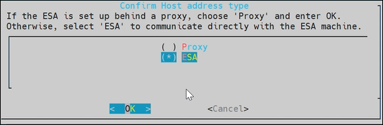 Enter the FQDN of the ESA or Proxy. Press Tab to select OK and press Enter.