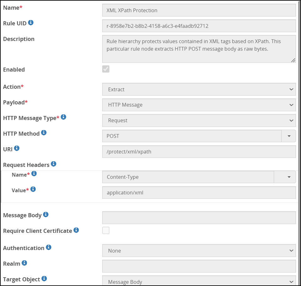 | remove_pis | Boolean value used to remove Processing Instructions (pi) from the XML payload. In the XML format, processing instructions are entered in the <? -- ?> tag. | False |