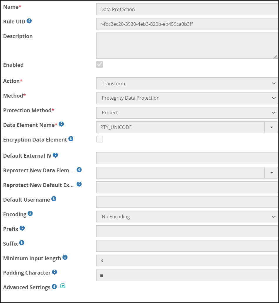 Under the extract rule, create a transform rule to protect the sensitive data between the