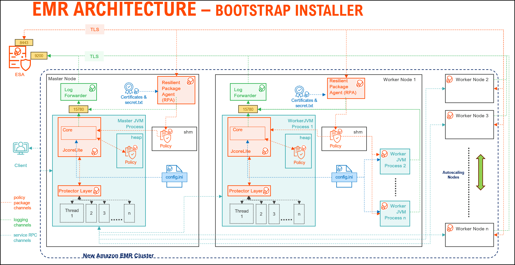 The architecture for the EMR distribution of the Big Data Protector is depicted in the image below.