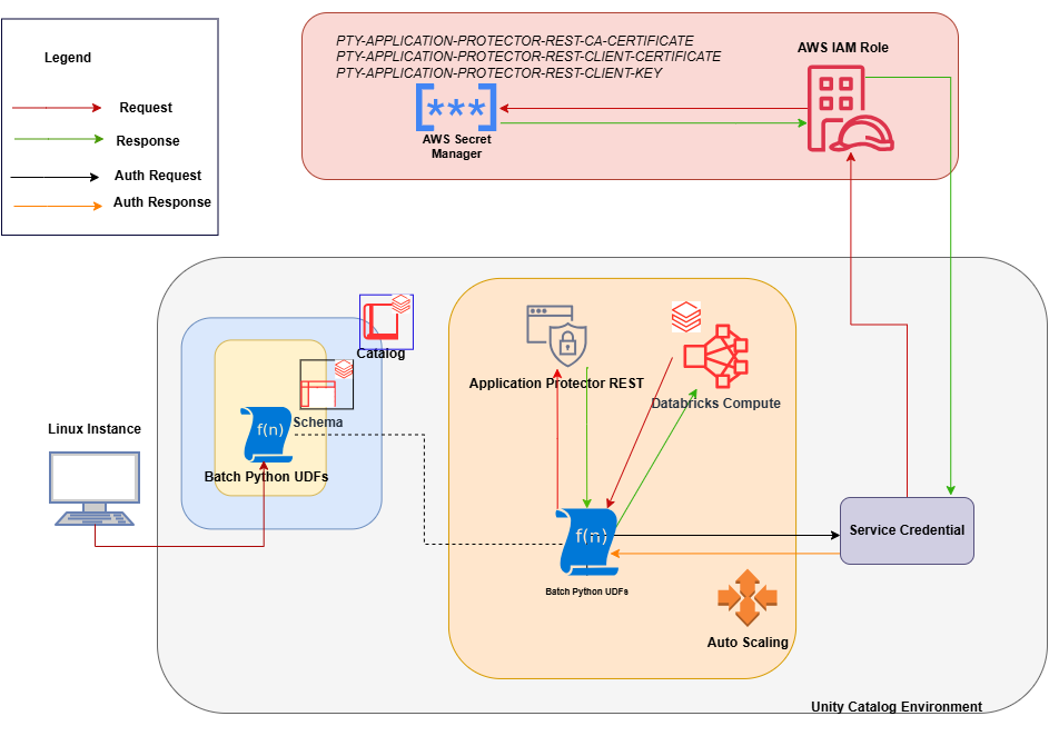 The architecture for installing the AWS Databricks protector using the Application Protector REST approach is depicted in the image below.