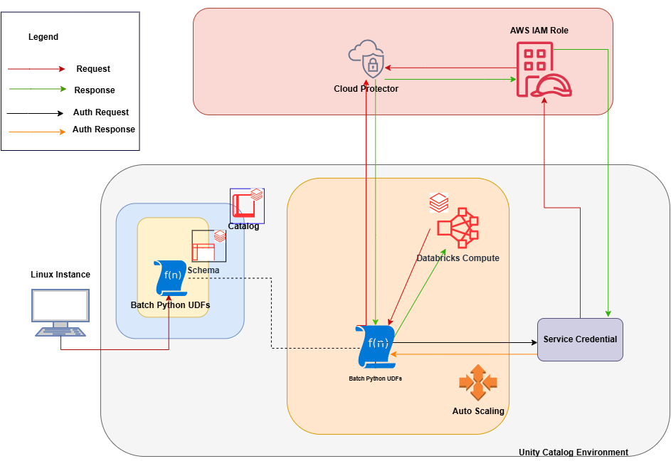 The architecture for installing the AWS Databricks protector using the Cloud Protector approach is depicted in the image below.