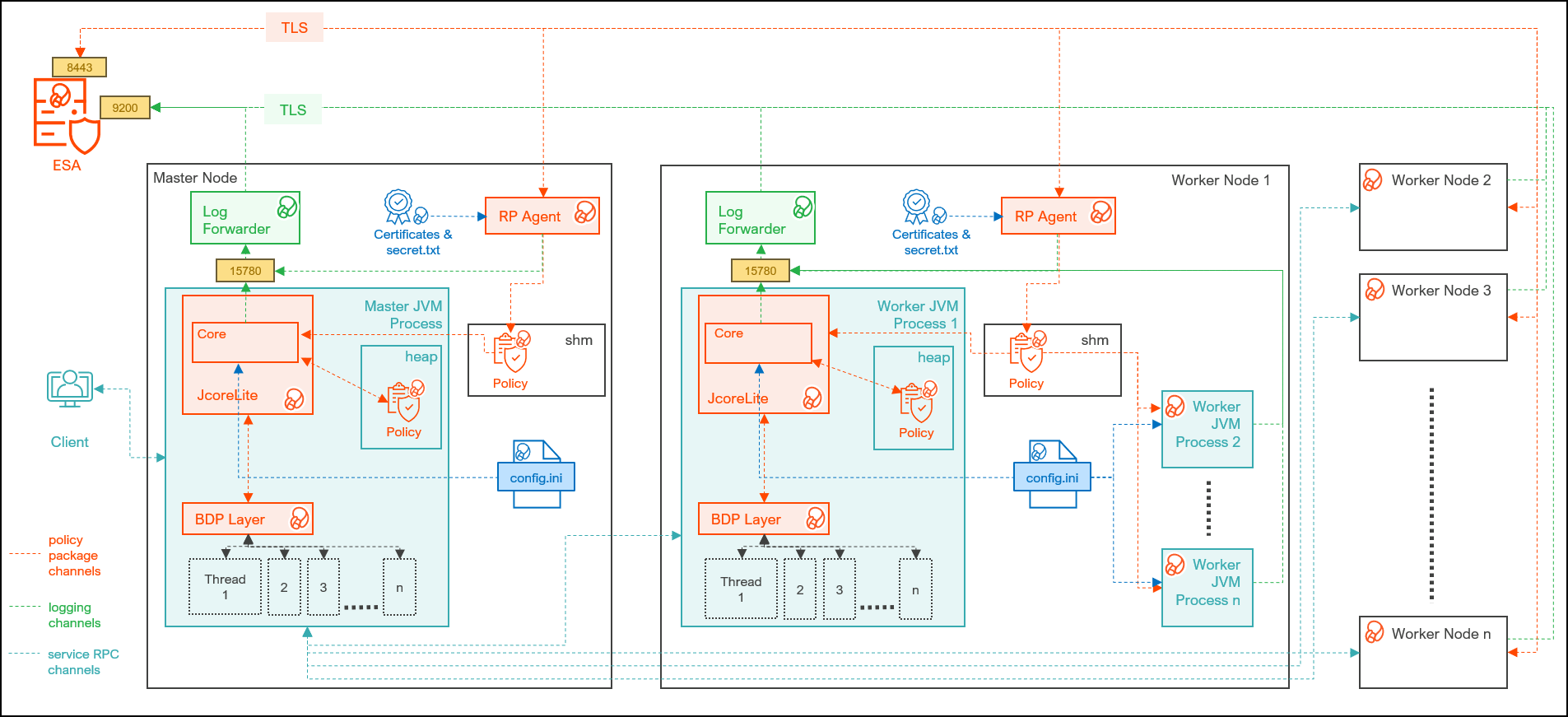 | Log Forwarder | Is a daemon running on each node that routes the audit logs and application logs to ESA/Audit Store. |