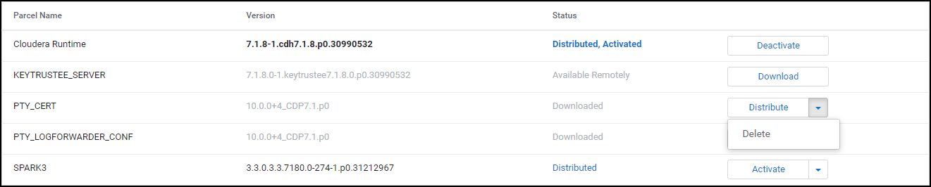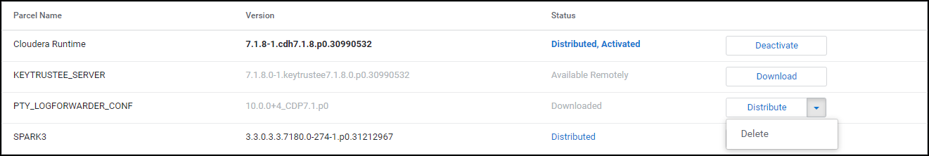 After removing the Big Data Protector parcel from the nodes, delete the following Big Data Protector parcels from the local Cloudera Manager repository: