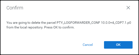 The Log Forwarder configuration parcel is deleted from the local repository.